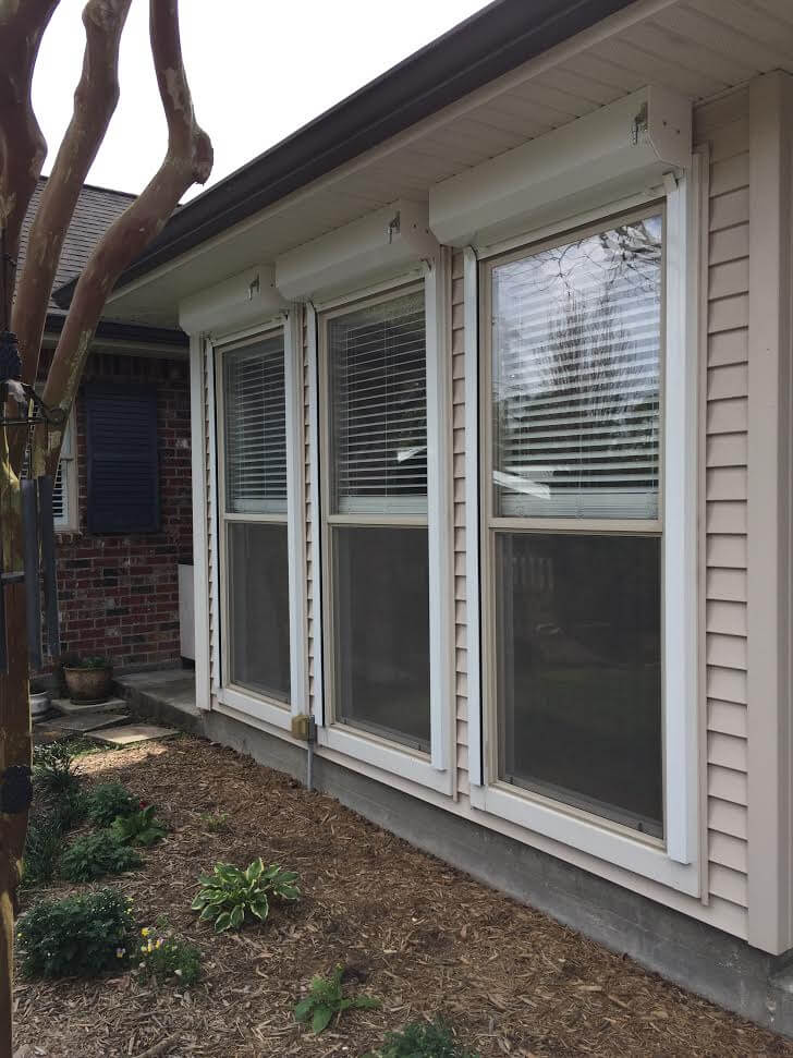 The aluminum shutters are cut to size and then fastened at key points. The rails are then overlapping to create a seamless appearance and enhanced strength. Powder coating is then applied to the shutters to make them scratch and weather resistant. In addition to looking great, our aluminum shutters are also storm rated to protect you from storms.
