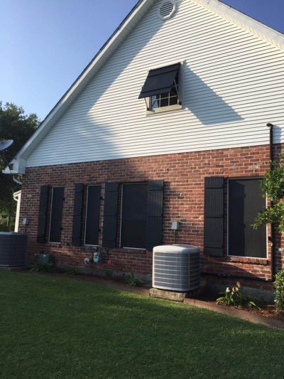 Board and Batten Shutters are easy to open and close. They will securely protect your home or business from debris and the wind during a hurricane. They are manufactured in-house in Houma, Louisiana, and powder coated to meet your needs.